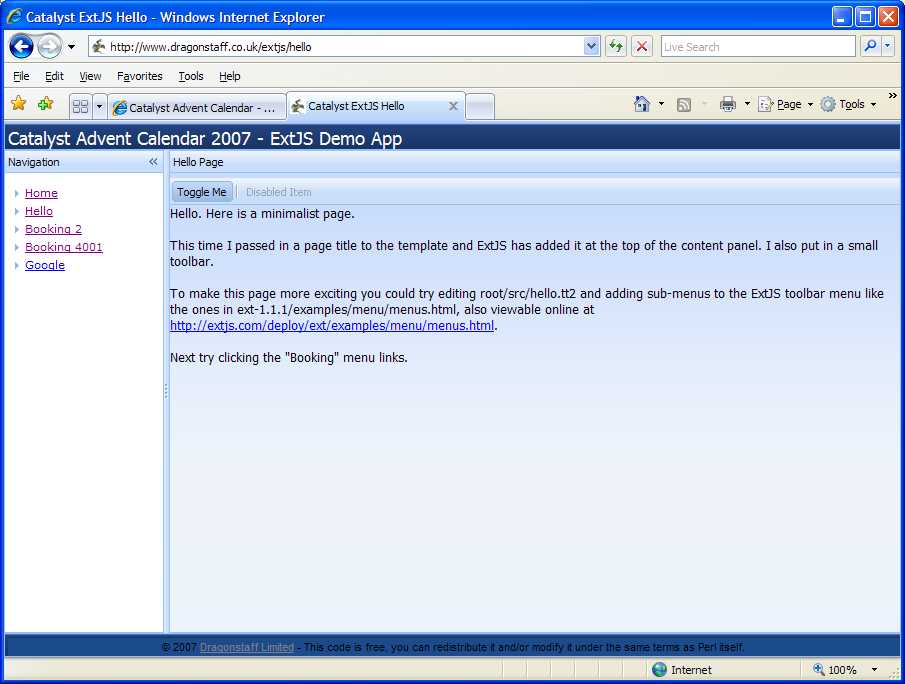 - An example Catalyst application with ExtJS